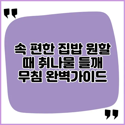 속 편한 집밥을 원하신다면, 오늘 소개할 취나물 들깨 무침은 여러분의 식탁에 딱 필요한 반찬입니다. 이 건강한 반찬은 간단하게 만들 수 있어 바쁜 일상 속에서도 손쉽게 준비할 수 있습니다. 여러 가지 양념과 재료를 활용해 맛을 더할 수 있는 이 요리는 누구나 쉽게 따라 할 수 있는 집밥 레시피입니다. 속 편한 요리로서의 매력을 지닌 취나물 들깨 무침이 궁금하시죠? 그럼, 함께 자세히 알아보도록 하겠습니다.